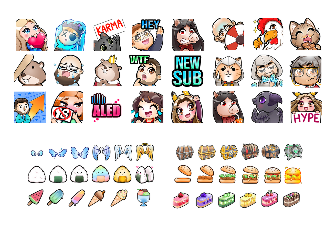 Toutes ces étapes sont valable pour toutes les commandes ; illustrations - scènes - emotes - badges - alertes - panels - avatars - chibis - etc...Les fichiers sont fournis en : Png 3 tailles - .webm - Jpeg HD - mp4 HD - Pdf selon les prestations.